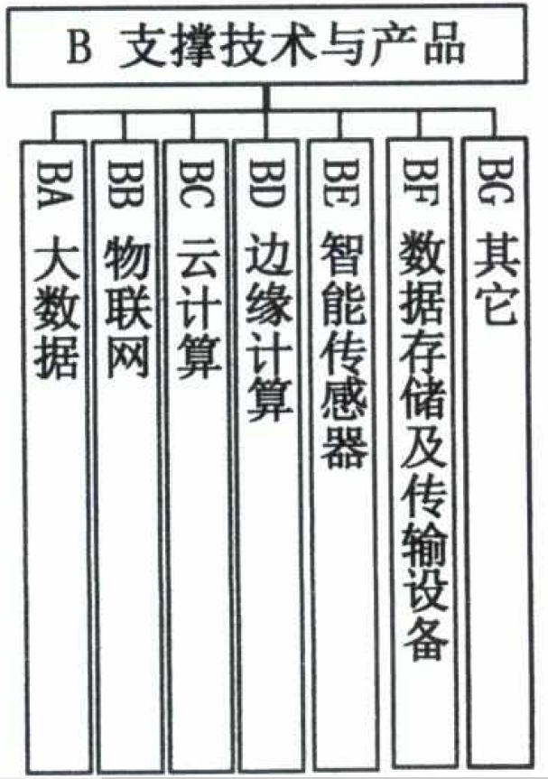 支撐技術與產品標準主要包括大數(shù)據、物聯(lián)網、云計算、邊緣計算、智能傳感器、數(shù)據存儲及傳輸設備等部分,如圖4所示。