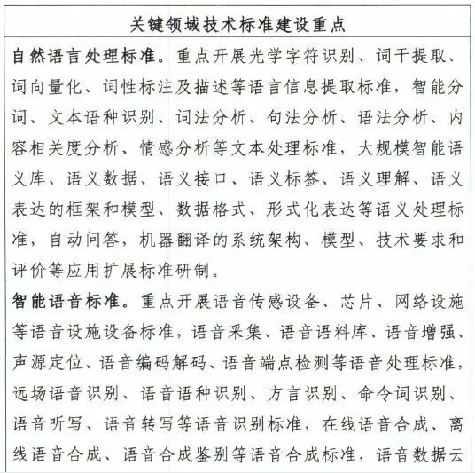 2.智能語音標準。規(guī)范人機語言通信的技術和方法,確保語音識別、語音合成及其應用的準確性、一致性、高效性和可用性。智能語音標準包括語音設施設備、語音處理、語音識別、語音合成、語音接口五個部分。