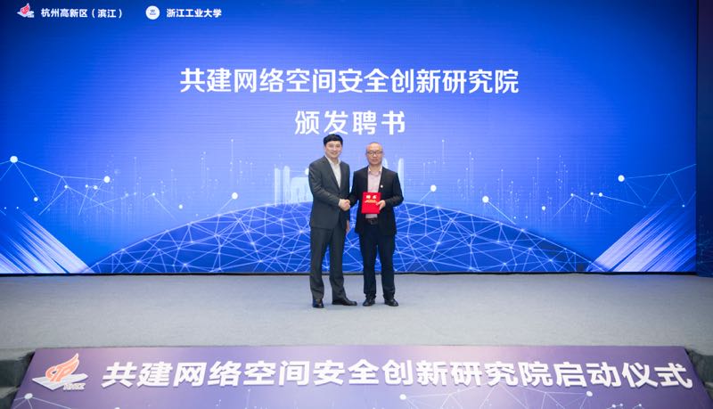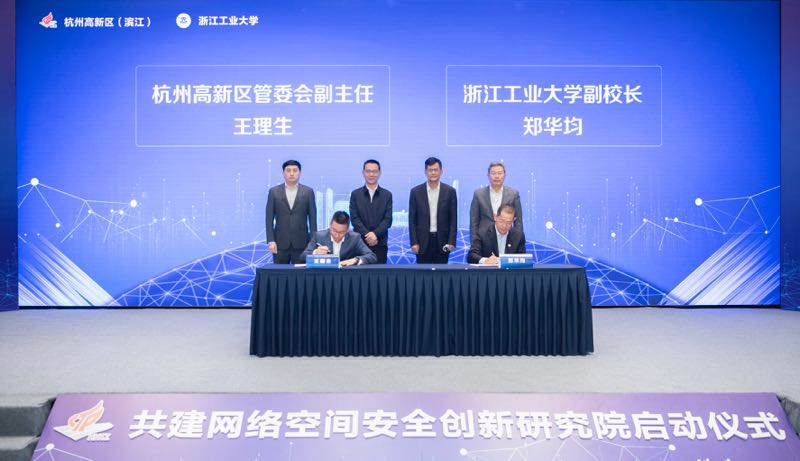 2022年5月13日,杭州高新區(qū)(濱江)與浙江工業(yè)大學(xué)共建“濱江區(qū)浙工大網(wǎng)絡(luò)空間安全創(chuàng)新研究院”啟動儀式舉行。浙工大黨委書記蔡袁強,區(qū)委書記章登峰出席并致辭。浙工大校長李小年、副校長鄭華均,區(qū)委副書記、區(qū)長鄭迪,區(qū)領(lǐng)導(dǎo)陶峰、王理生出席。