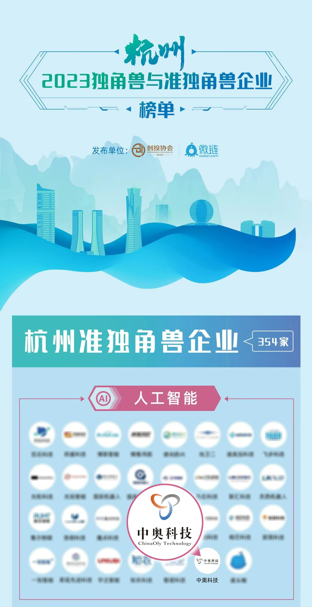 4月10日,第七屆萬物生長大會在杭州市國際博覽中心舉行。會上,中國投資發展促進會創投專委會、杭州市創業投資協會聯合微鏈共同發布2023杭州市獨角獸(準獨角獸)榜單和中國未來獨角獸榜單。中奧科技已連續五年入選人工智能賽道·杭州準獨角獸企業榜單。