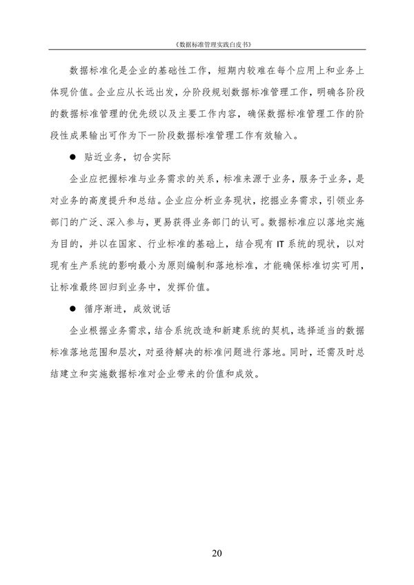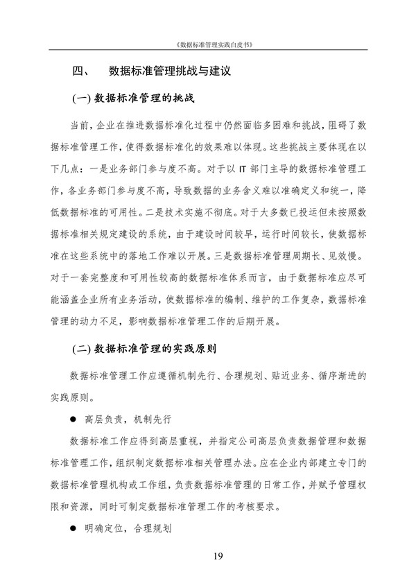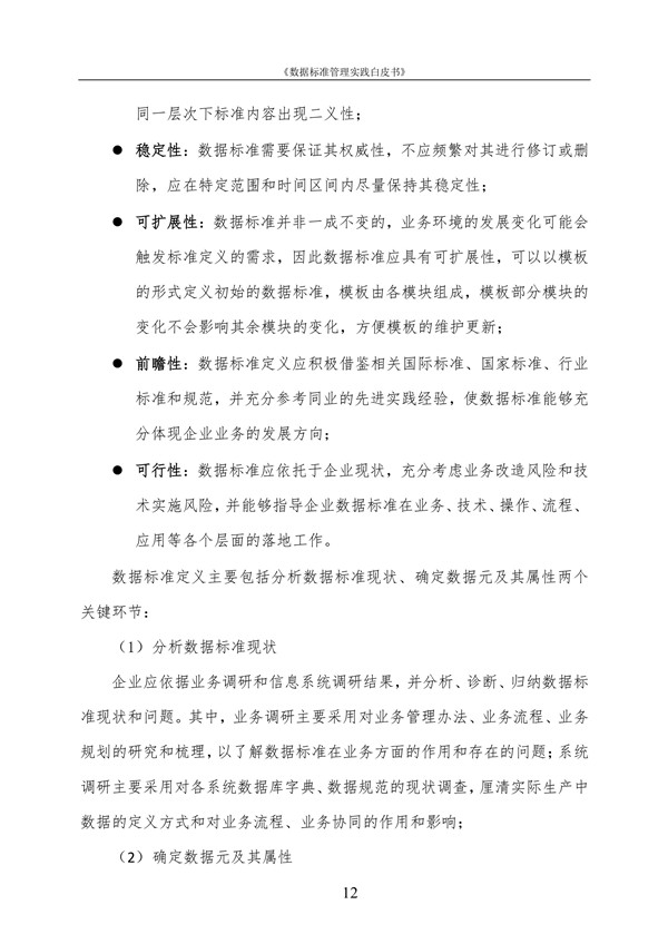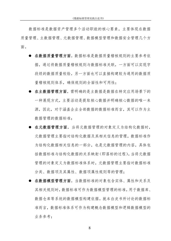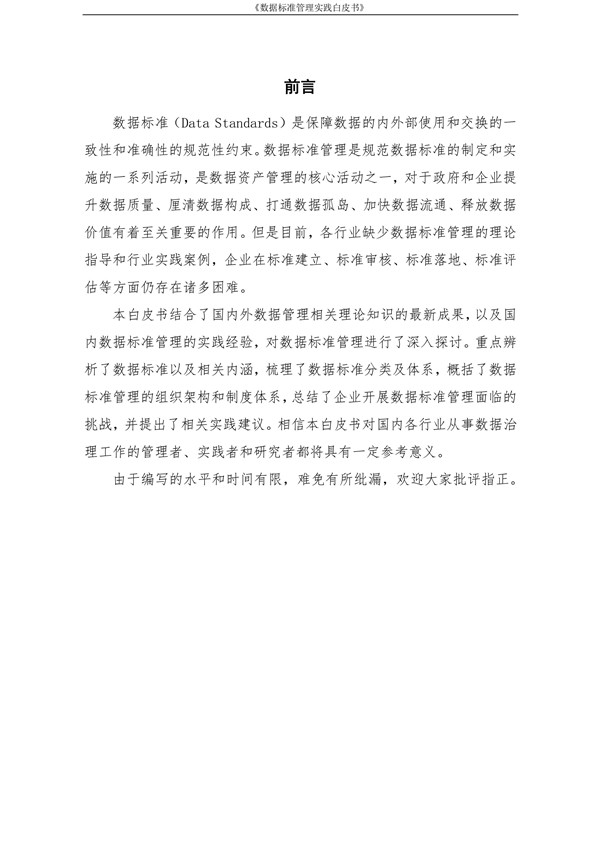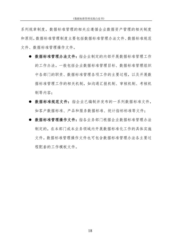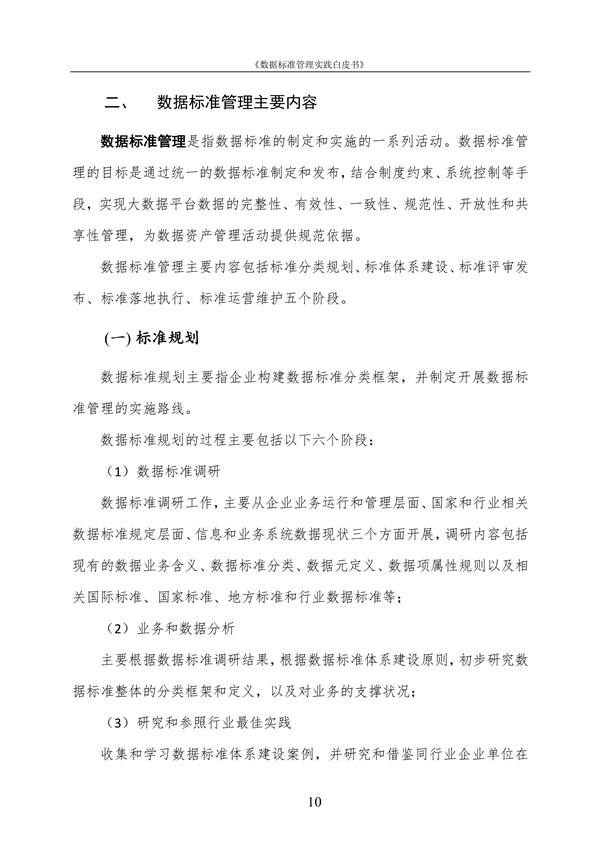 白皮書結合了國內外數據管理相關理論知識的最新成果,以及國內數據標準管理的實踐經驗,對數據標準管理進行了深入探討。重點辨析了數據標準以及相關內涵,梳理了數據標準分類及體系,概括了數據標準管理的組織架構和制度體系,總結了企業開展數據標準管理面臨的挑戰,并提出了相關實踐建議。